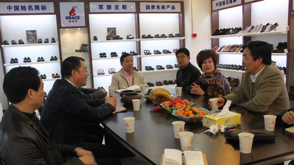2012年3月21日,市政协主席虞红鸣来我公司走访,县委副书记、县长戴邦和,县政协主席季力华陪同走访。虞红鸣一行首先来到格瑞斯,实地参观了针车、成型车间,了解企业的生产、销售情况,并认真听取叶月琴总经理对企业未来的发展规划思路。